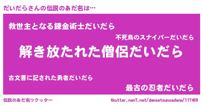 | 男性向けラノベタイトル風あだ名 | 『だいだらの嫁は女の子じゃないと思った?』 |