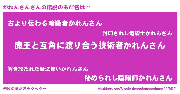 | ヒーロー風カッコイイあだ名 | 『愛の使者かれんさん』『仮面カレダー』 |