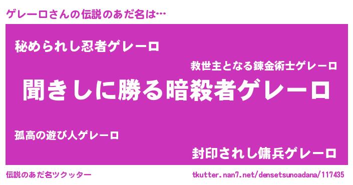 | ポケモン風あだ名 | 『ゼニゲレ』『ゲレゴンZ』 |