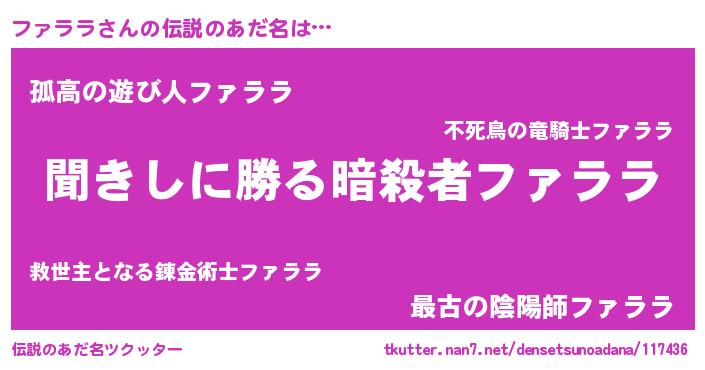 | 意味不明あだ名 | 『永久保存ファララ』『自称ファララ』 |
