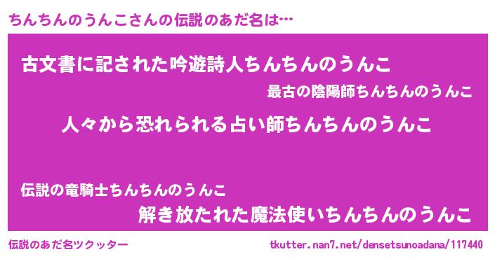 ちんちんのうんこさんの伝説のあだ名をツクッター!