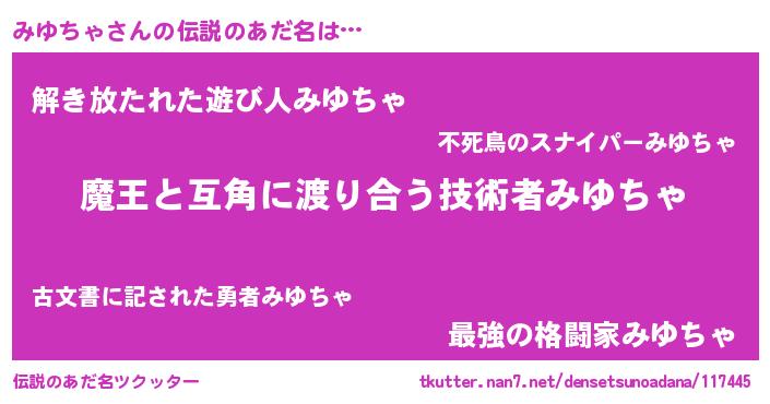 | ヒーロー風カッコイイあだ名 | 『ウルトラ戦士ミユチャ』『天弓騎士ミユ』 |