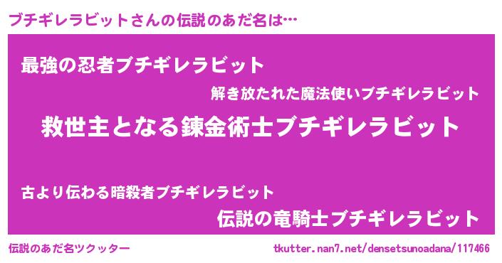 | ヒーロー風カッコイイあだ名 | 『天空の使者ブチギレラビット』 |