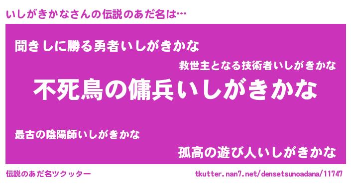 | 女子向けラノベタイトル風あだ名 | 『いしがきかな姫と円卓の騎士』 |