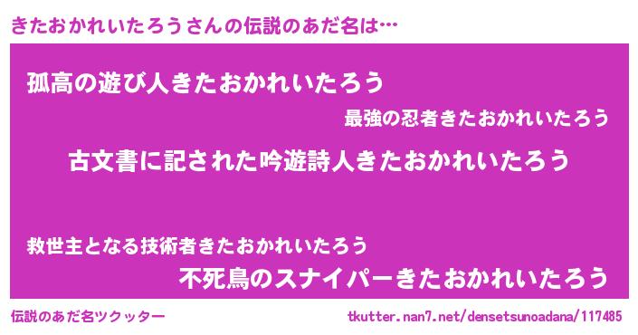 | ヒーロー風カッコイイあだ名 | 『最強戦士キタオカレイタロウ』 |