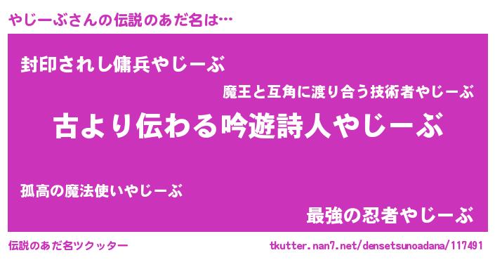| ヘコむあだ名 | 『やじーぶ(笑)』『やじにゅー』 |