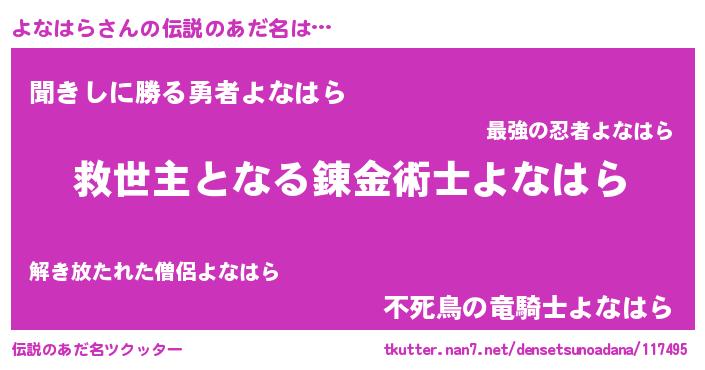 | 欧米人風あだ名 | 『ダニエルよなはら』『マイケルよなはら』 |
