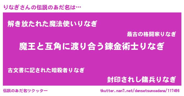 | 市区町村名 | 『りな田谷区』『福りな市』 |