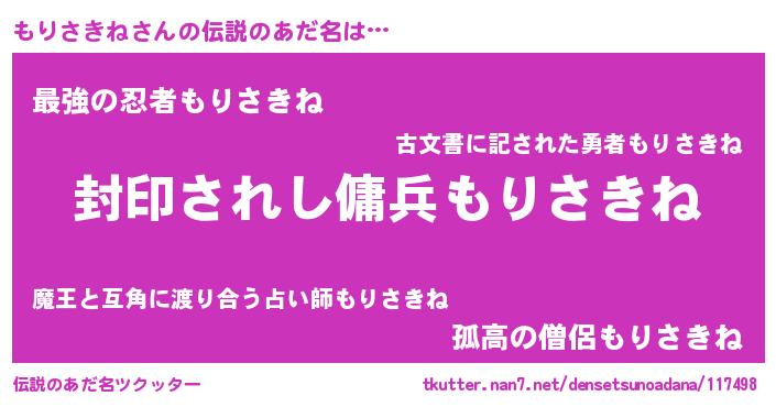 | ヘコむあだ名 | 『もりにゅー』『つくし』『もりお』 |