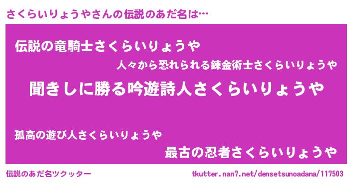 | ヘコむあだ名 | 『さくらいりょうや(小並感)』『さくにー』 |