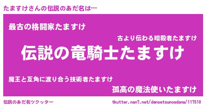 | 胡散臭い通販商品みたいなあだ名 | 『必ず成功するブレスレット…その名も「たますけ」』 |