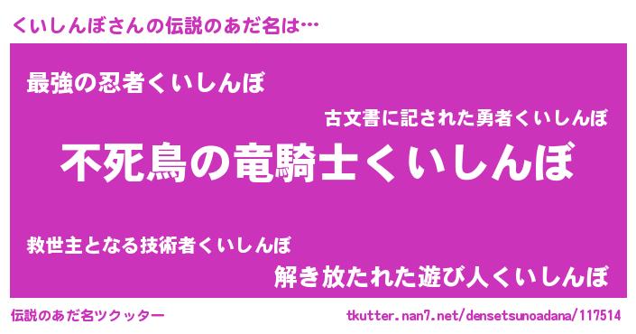 | ヒーロー風カッコイイあだ名 | 『スーパークイシンボ』『炎刃騎士クイ』 |