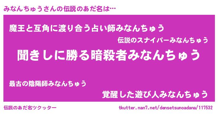 | ヒーロー風カッコイイあだ名 | 『仮面ミナダー』『ネオミナンチュウ』 |