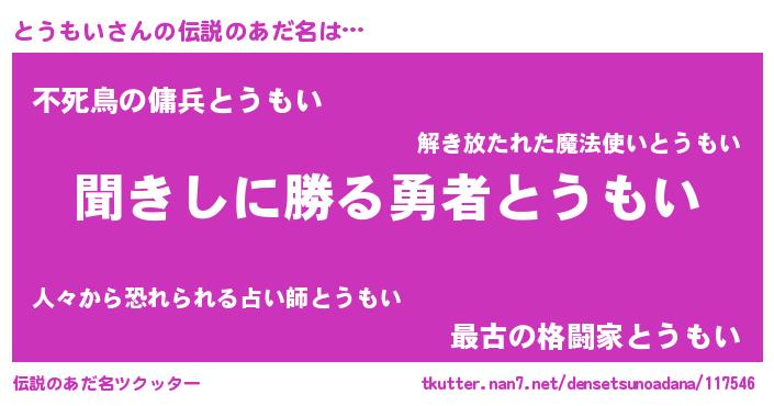 | ヘコむあだ名 | 『とうもい(震え声)』『とうっふぃ~』 |