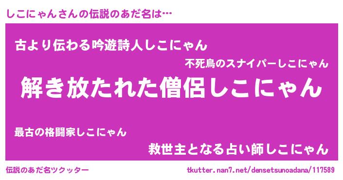 | 意味不明あだ名 | 『住所不定無職しこにゃん(65歳)』 |