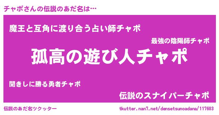 | ヒーロー風カッコイイあだ名 | 『黄金騎士チャ』『慈愛の使者チャポ』 |