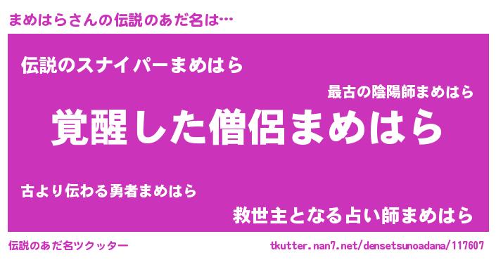 | ヒーロー風カッコイイあだ名 | 『天弓騎士マメ』『超時空戦士マメハラ』 |
