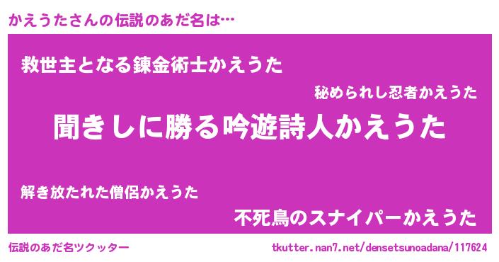 | ヘコむあだ名 | 『かえうた(小並感)』『かえもー』 |