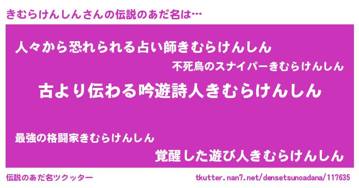 | 男性向けラノベタイトル風あだ名 | 『きむらけんしんという概念が存在しない退屈な世界 』 |