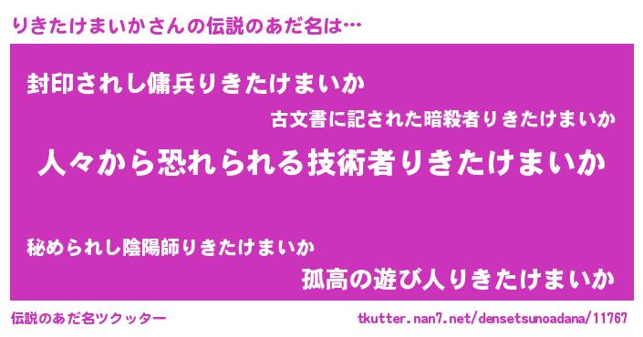 | 意味不明あだ名 | 『住所不定無職りきたけまいか(6歳)』 |