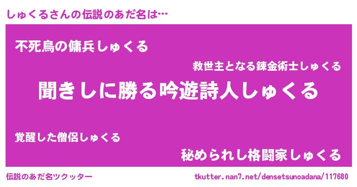 | 料理風あだ名 | 『しゅくるごはん』 |