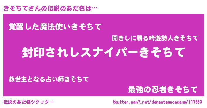 | 女子向けラノベタイトル風あだ名 | 『闇のきそちて』『きそちて様がみてる』 |