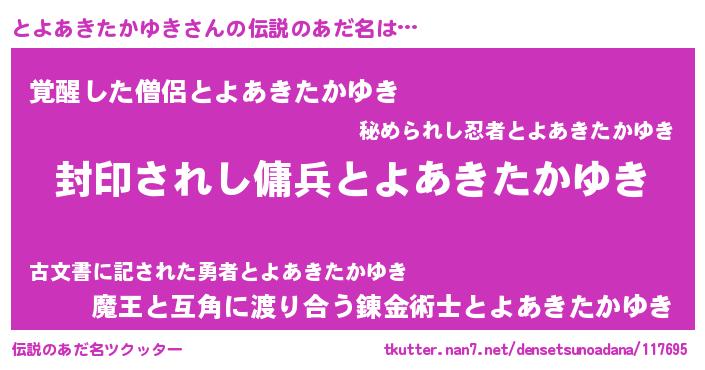 | 意味不明あだ名 | 『自称とよあきたかゆき』 |