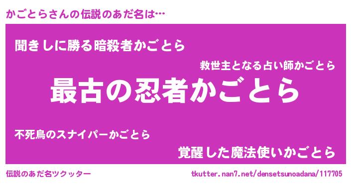| 意味不明あだ名 | 『かごとらフォーエバー』 |