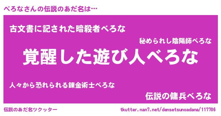 | 意味不明あだ名 | 『とにかく怪しいべろな』 |