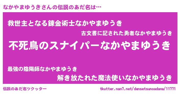 | 女子向けラノベタイトル風あだ名 | 『なかやまゆうき姫と円卓の騎士』 |