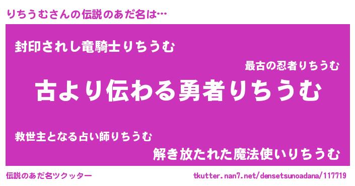 | 意味不明あだ名 | 『永久保存りちうむ』『自称りちうむ』 |