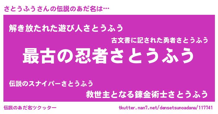 | ファンタジー風あだ名 | 『エターナルサトウフウー』『ゼサトトゥ』 |