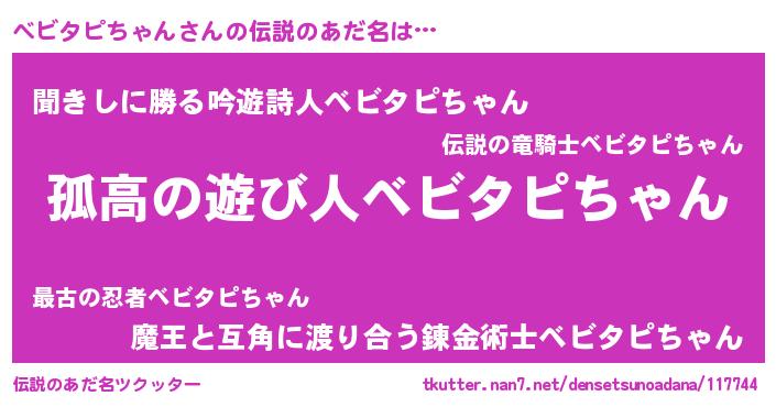 | 男性向けラノベタイトル風あだ名 | 『ベビタピチャンスレイヤー』 |