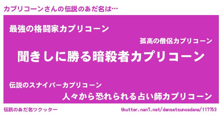 | 女子向けラノベタイトル風あだ名 | 『異世界で失敗しない100のカプリコーン』 |