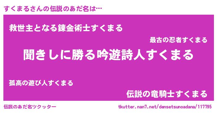 | 意味不明あだ名 | 『永久保存すくまる』『ペロリンすくまる』 |