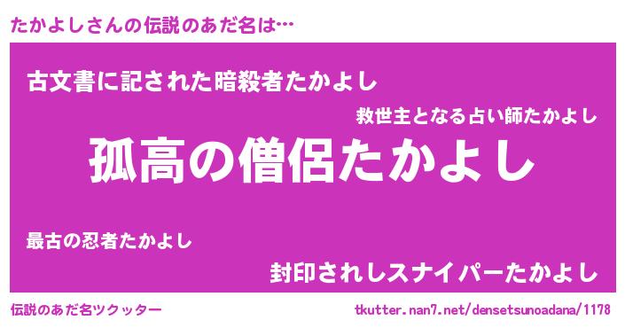 | ヒーロー風カッコイイあだ名 | 『超時空戦士タカヨシ』『炎刃騎士タカ』 |
