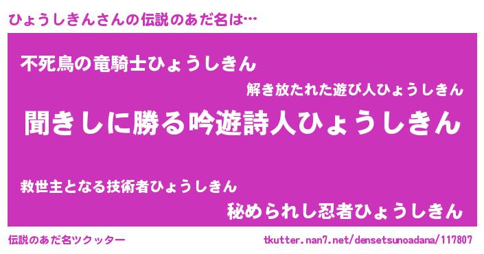 | ヒーロー風カッコイイあだ名 | 『ネオヒョウシキン』『仮面ヒョダー』 |