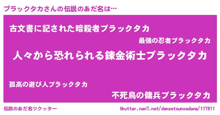 | 男性向けラノベタイトル風あだ名 | 『緋弾のブラックタカ』 |