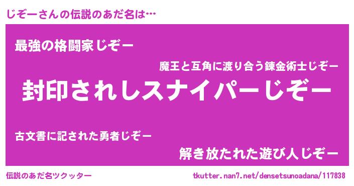 | 胡散臭い通販商品みたいなあだ名 | 『億万長者になれる霊験あらたかなお札…その名も「じぞー」』 |