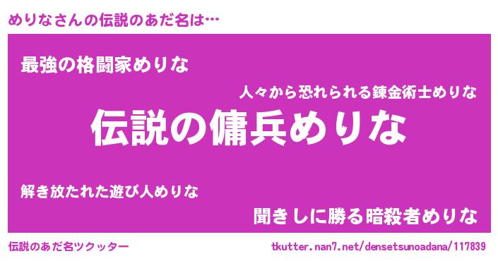 | ファンタジー風あだ名 | 『メリフェル』『エターナルメリナー』 |