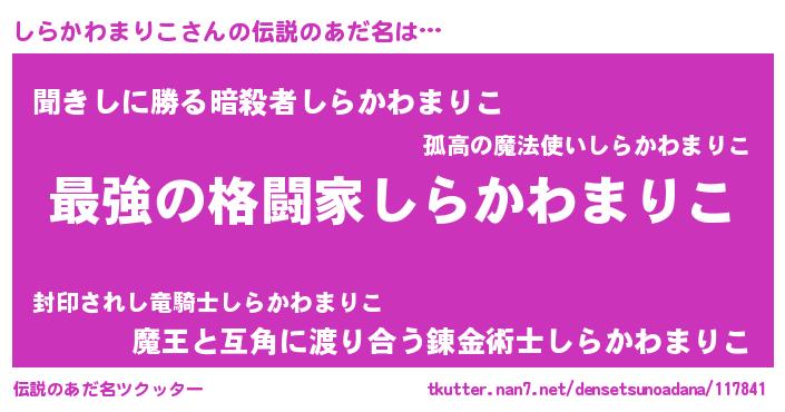 | 意味不明あだ名 | 『しらかわまりこフォーエバー』 |