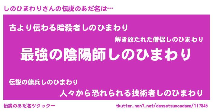 | ヘコむあだ名 | 『酢こんぶ』『しのひまわり(小並感)』 |