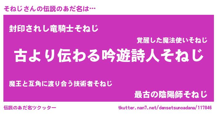 | ヒーロー風カッコイイあだ名 | 『ネオソネジ』『スーパーソネジ』 |