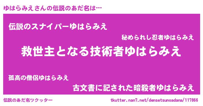 | ヘコむあだ名 | 『ゆはにー』『ゆはらみえ(小並感)』 |