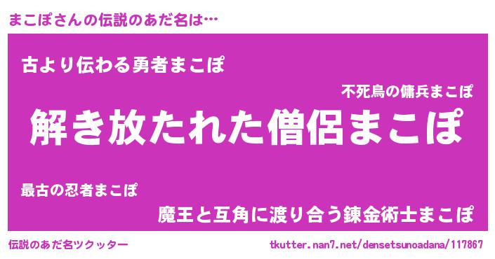 | ヒーロー風カッコイイあだ名 | 『幻影騎士マコ』『ネオマコポ』 |