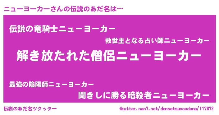 | 意味不明あだ名 | 『住所不定無職ニューヨーカー(56歳)』 |
