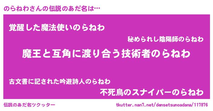 | ヘコむあだ名 | 『のらを』『のらにー』『なまこ酢』 |
