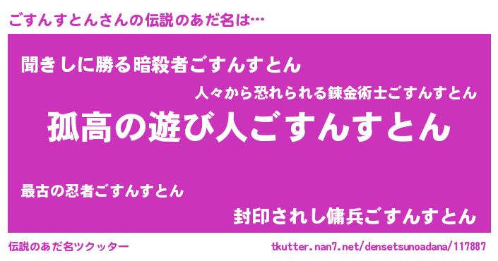| 意味不明あだ名 | 『とにかく怪しいごすんすとん』 |