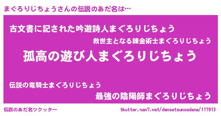 | 女子向けラノベタイトル風あだ名 | 『まぐろりじちょうなんてお断りですっ。』 |