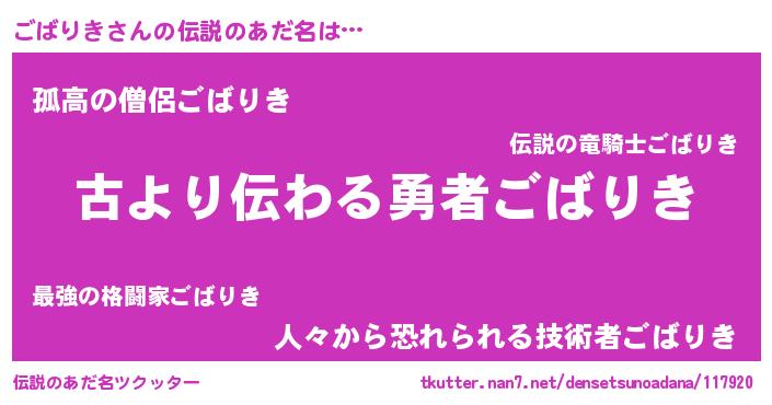 | ヒーロー風カッコイイあだ名 | 『仮面ゴバダー』『ネオゴバリキ』 |
